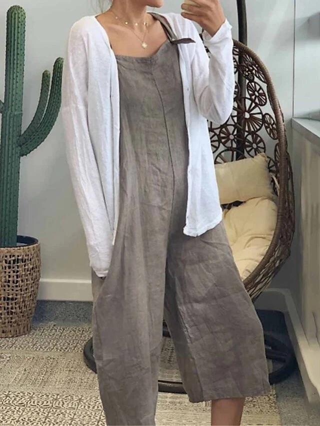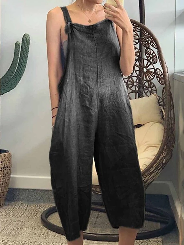Denim Jumpsuit For Women Overall Pocket Solid Color Square Neck Streetwear Daily Vacation Regular Fit Sleeveless Black Army Green Navy Blue S M L Summer FallCowgirl Jeans & Western Wear