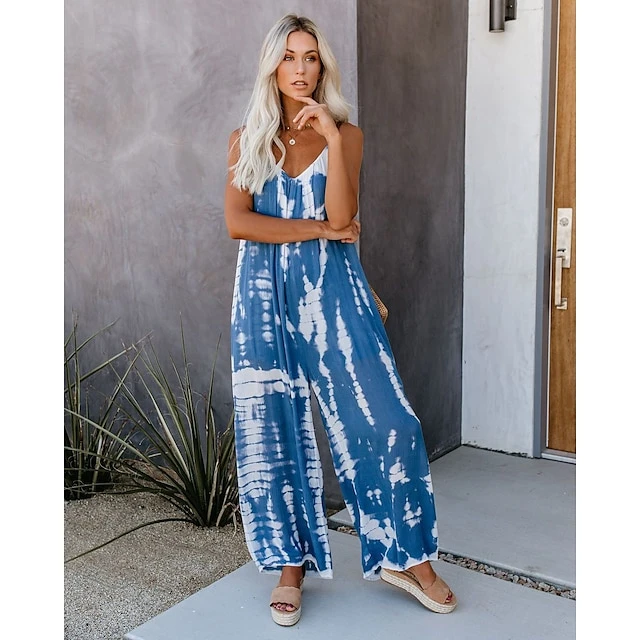 Jumpsuits For Women Fall Tie Dye V Neck Pink Fall Winter Basic Casual Daily Wide Leg Loose Strap Sleeveless Blue Black Gray S M L