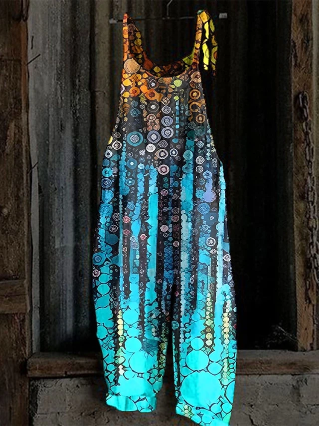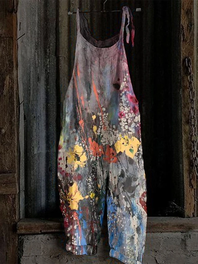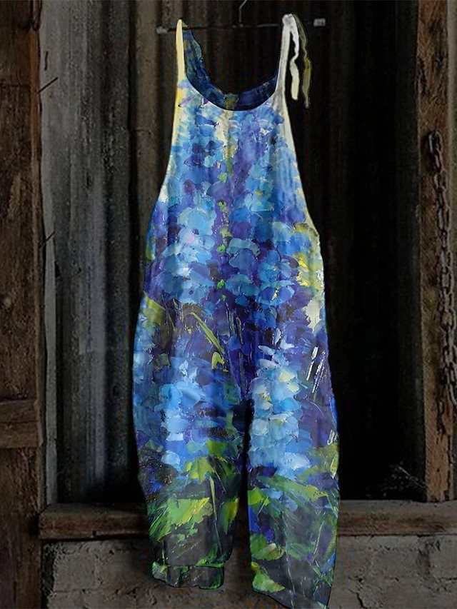 Jumpsuits For Women Maillard Overall Print Floral Crew Neck Streetwear Daily Vacation Loose Fit Sleeveless Light Green Pink Royal Blue S M L Fall