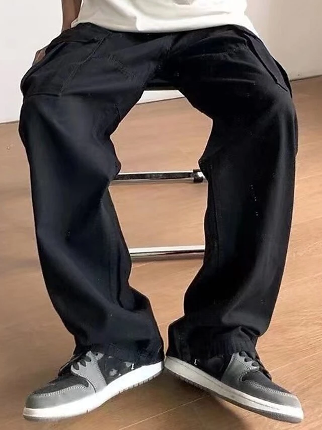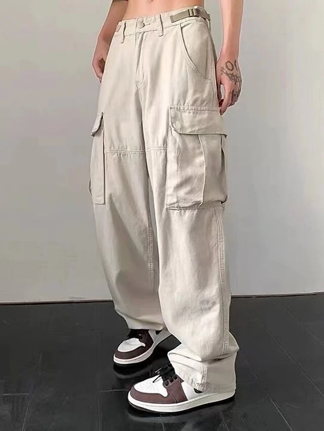 Men‘s Cargo Khaki parachute Pants Trousers Trousers Full Length Faux Linen Baggy Micro-elastic High Waist Sports Chino Casual Daily Black Apricot M L Spring &Fall