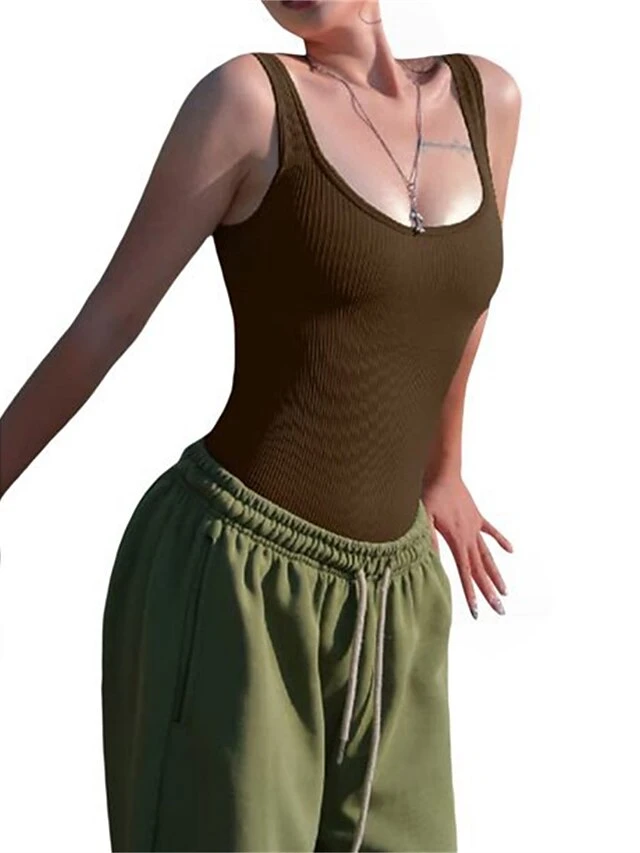 Women’s Bodysuit Backless Solid Color U Neck Sexy Home Daily Regular Fit Sleeveless Black White Pink S M L Summer