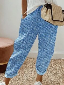 Springsummerstyle Womenâscasual Loose Pocket High Waist Nine-point Beam Pants Women