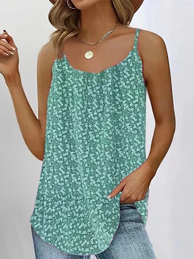 Women’s Camisole Summer Tops Black Red Blue Graphic Print Sleeveless Holiday Going Out Elegant Neon & Bright Beach U Neck