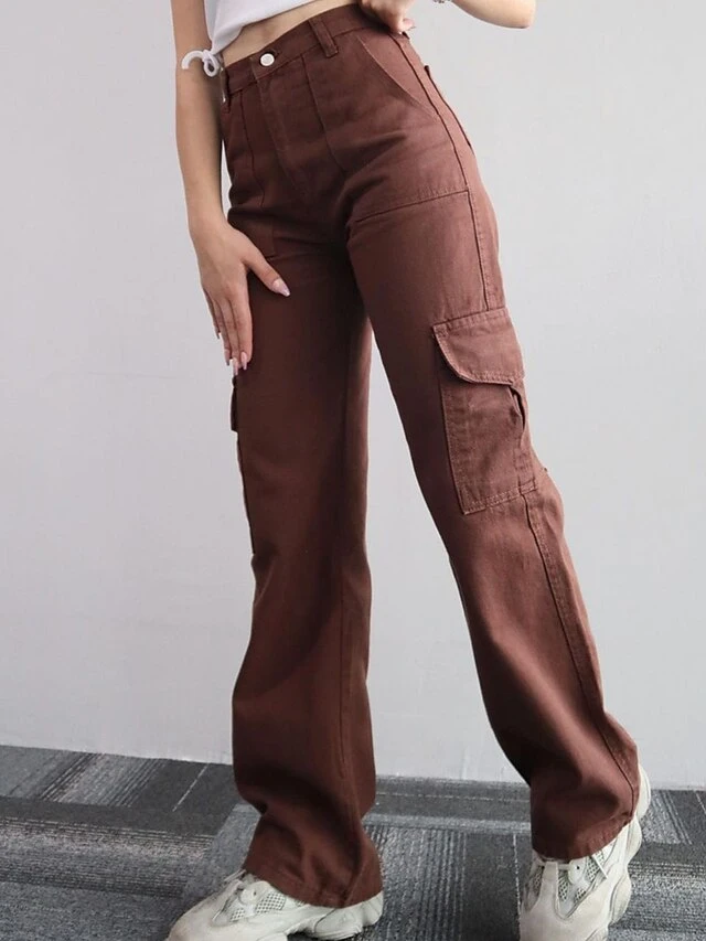 Women‘s Cargo Khaki Parachute Pants Chinos Trousers Full Length Cotton Micro-elastic Mid Waist Fashion Streetwear Street Daily Apricot Pink ArmyGreen S M Fall Winter