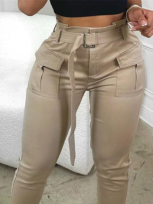 Women’s Cargo Pants Chinos Pants Trousers Full Length Pocket Micro-elastic High Waist Fashion Streetwear Street Daily Khaki S M Summer Fall