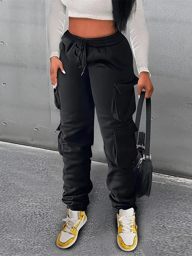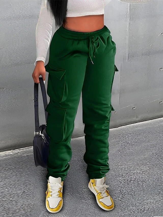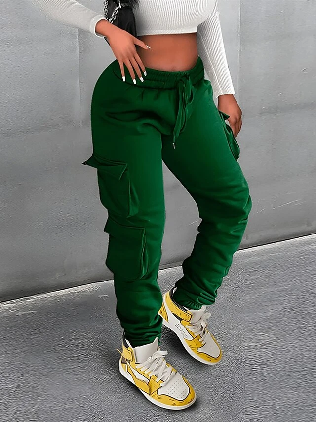 Women’s Cargo Pants Sweatpants Chinos Full Length Micro-elastic High Waist Fashion Streetwear Street Daily Black Green S M Fall Winter
