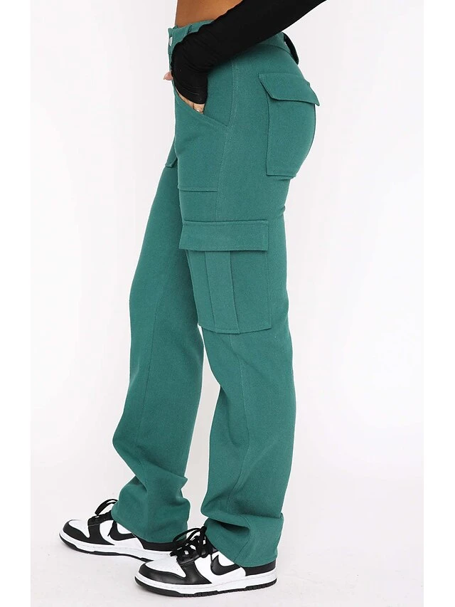 Women’s Cargo Pants Wide Leg Pants Trousers Full Length Cotton Baggy Micro-elastic Mid Waist Fashion Casual Street Casual Daily Black Green S M