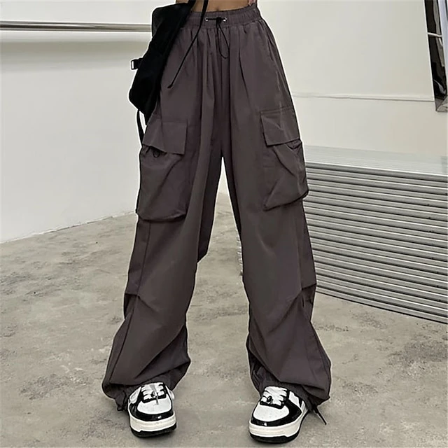 Women‘s Cargo Parachute pants Trousers Baggy Full Length Baggy Micro-elastic High Waist Fashion Casual Daily ArmyGreen Black S M Spring &Fall