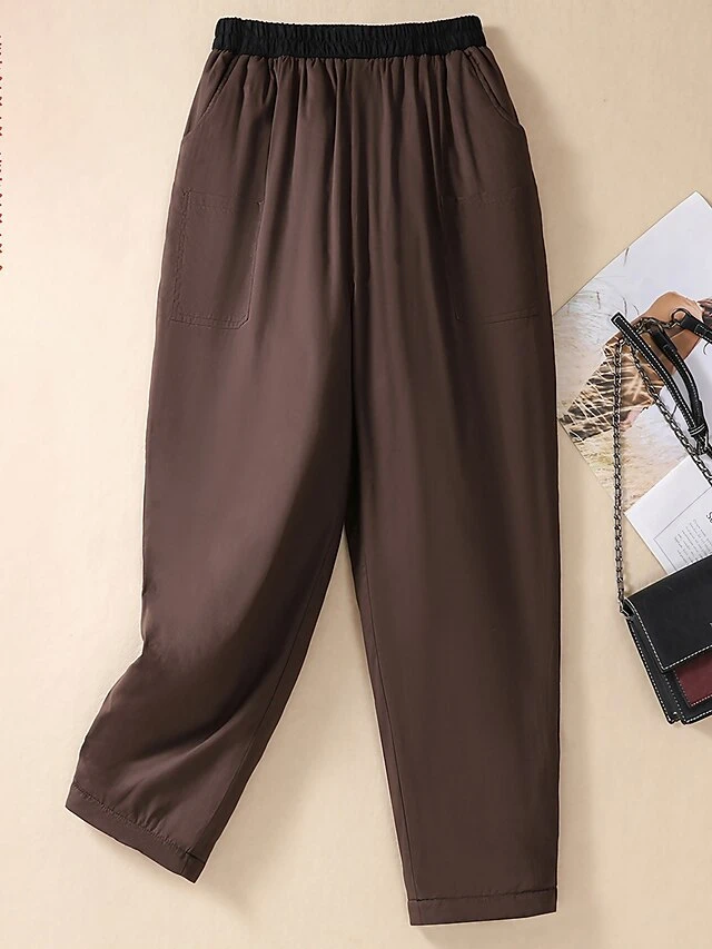 Women’s Chinos Pants Trousers Full Length Micro-elastic High Waist Fashion Streetwear Street Daily YC1103-Brown YC1103-black S M Winter