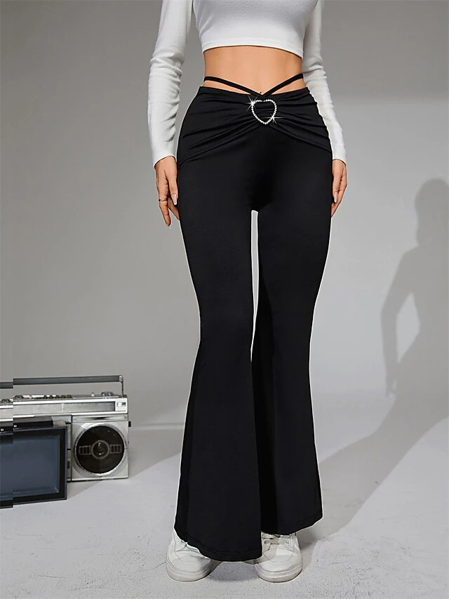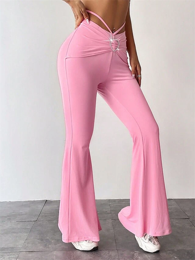 Women’s Flare Leggings Full Length Fashion Streetwear Street Daily Pinky Black S M Fall Winter