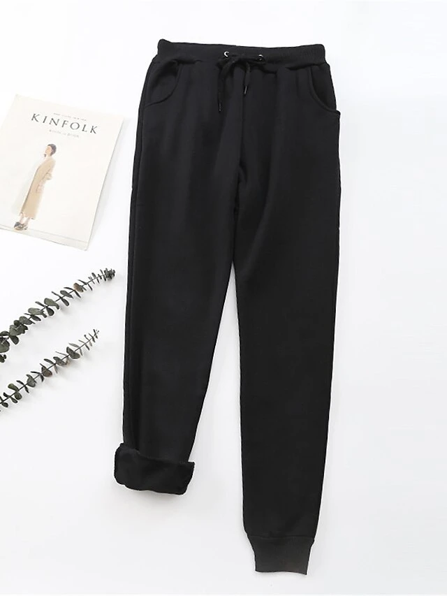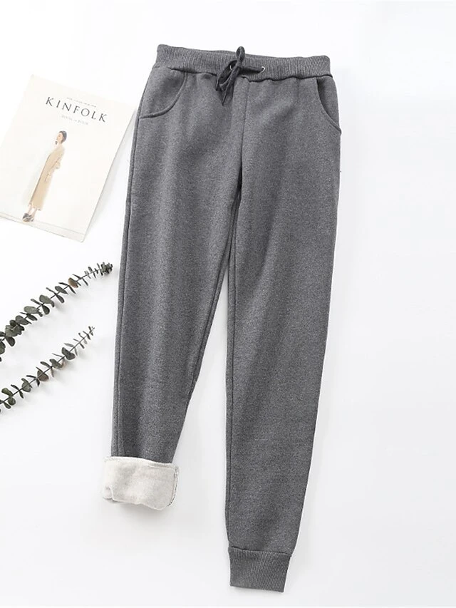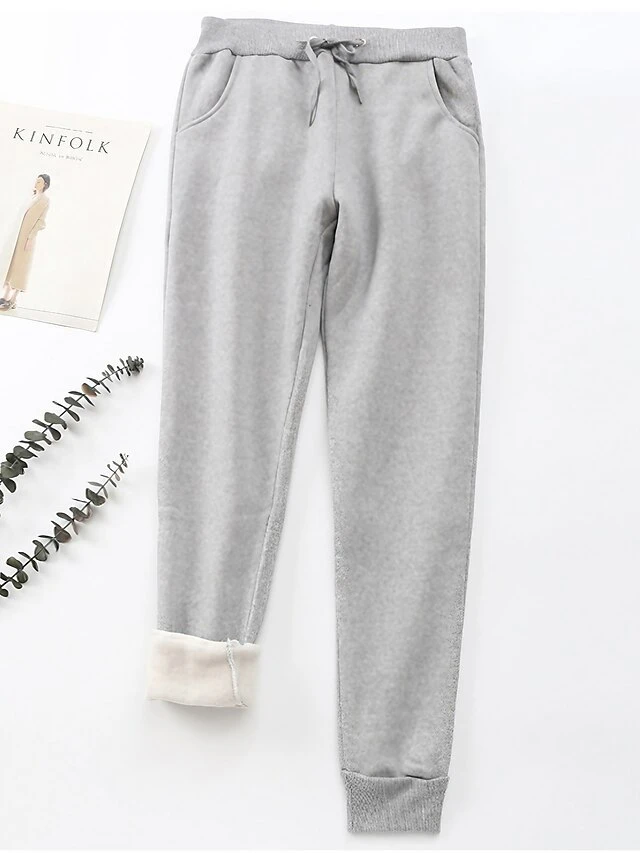 Women’s Fleece Pants Sweatpants Chinos Full Length Micro-elastic High Waist Fashion Streetwear Street Daily Light Gray Dark-Gray M L Fall Winter