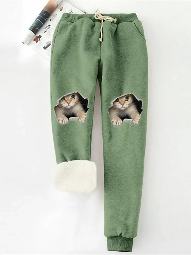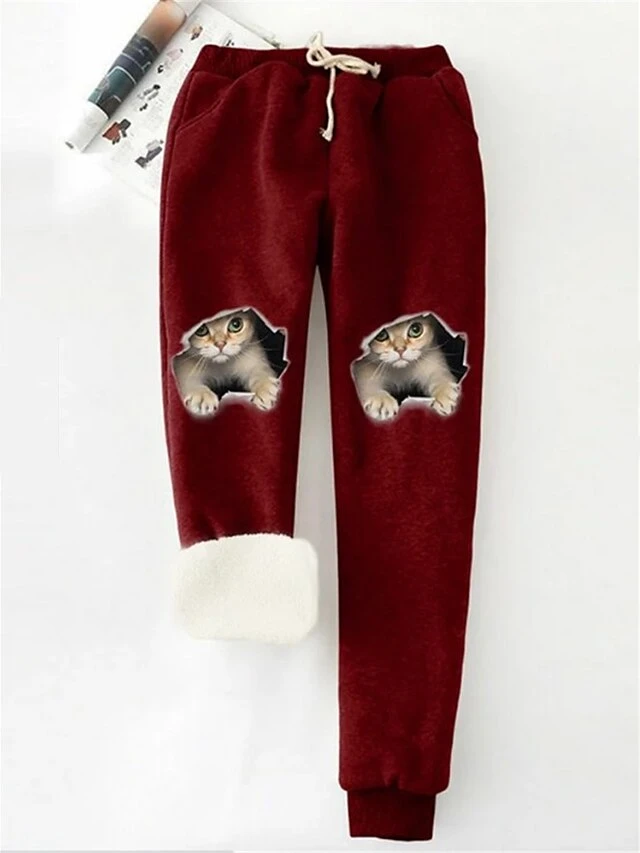Women’s Fleece Pants Sweatpants Chinos Full Length Pocket Print Micro-elastic Mid Waist Fashion Streetwear Street Daily Wine Black S M Summer Fall
