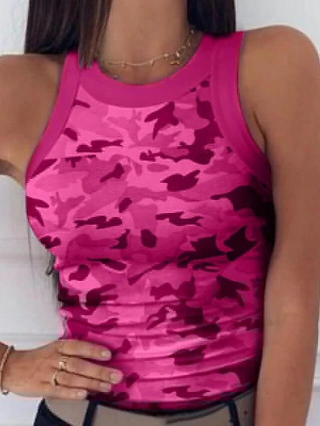 Women’s Going Out Tops Racer Back Tank Top Five-pointed Star-white Five-pointed Star-purple Five-pointed Star-green Star Camo Ribbed Casual Sports Basic Casual High Neck Slim S
