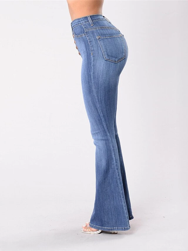 Women’s Jeans Bootcut Pants Trousers Full Length Denim Pocket High Cut Micro-elastic High Waist Fashion Streetwear Street Daily Deep Blue LightBlue S M Fall Winter