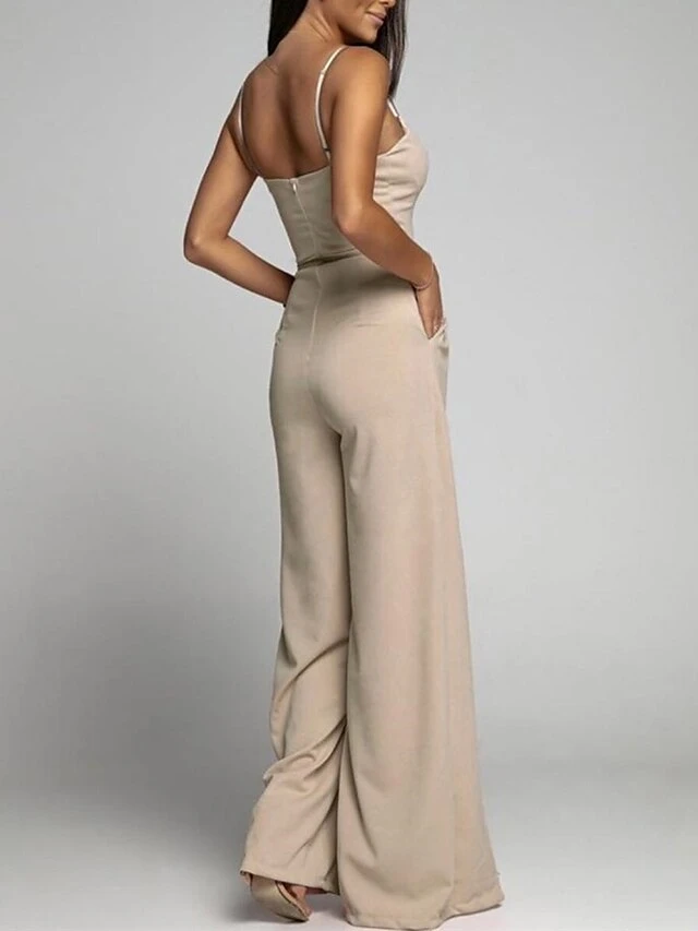 Women‘s Jumpsuit Backless High Waist Solid ColorPink Fall WinterSquare Neck Sexy Wedding Party Regular Fit Sleeveless Black White S M L Summer
