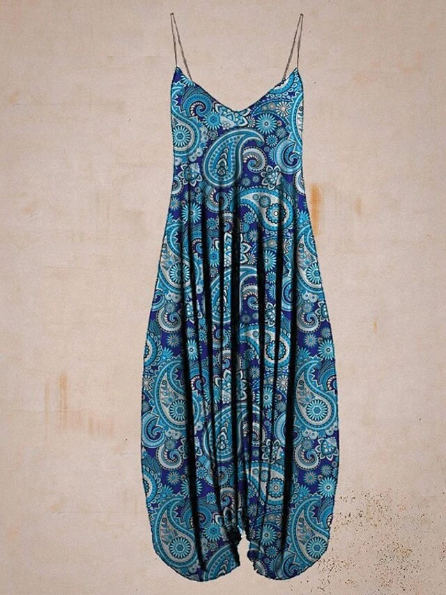 Women’s Jumpsuit Backless Print Floral V Neck Boho Street Vacation Regular Fit Sleeveless Blue Brown Navy Blue S M L Spring