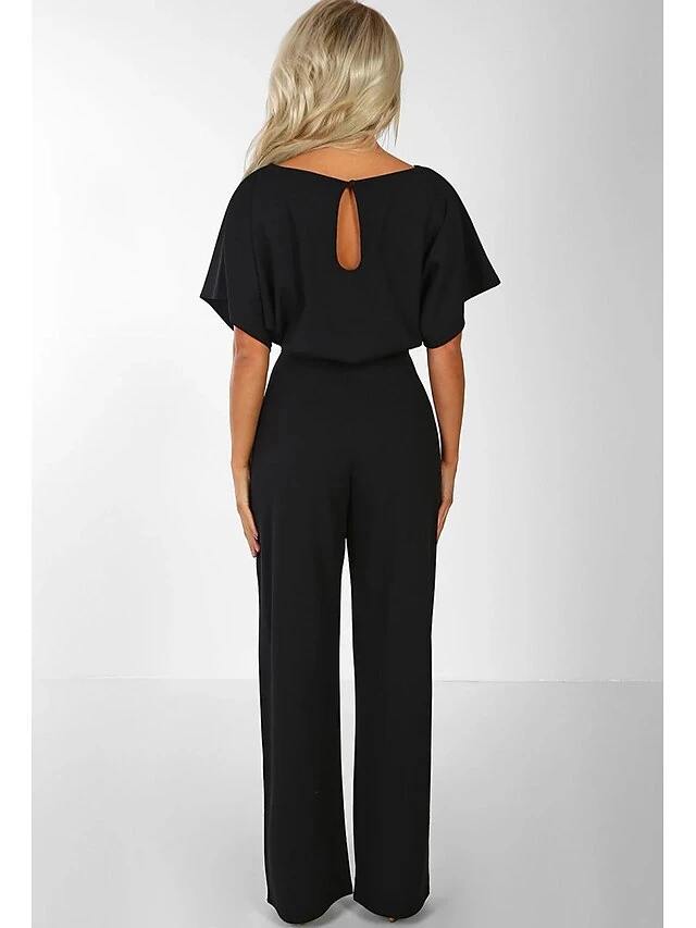 Women’s Jumpsuit Belted Round Neck Basic Daily Straight Regular Fit Short Sleeve Black Blue Pink S M L Summer