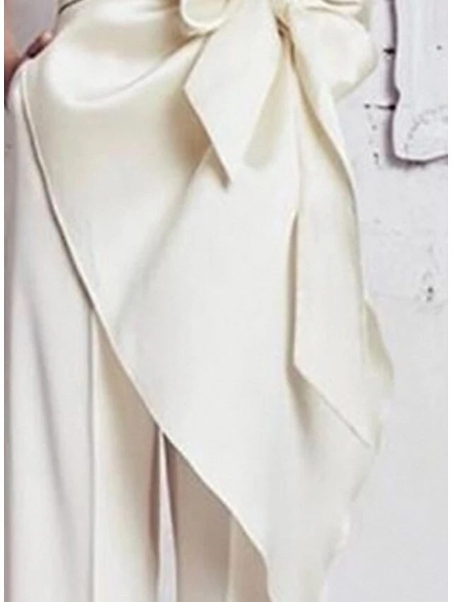 Women’s Jumpsuit Bow Solid Color Elegant Wedding Party Regular Fit Sleeveless White S M L Summer