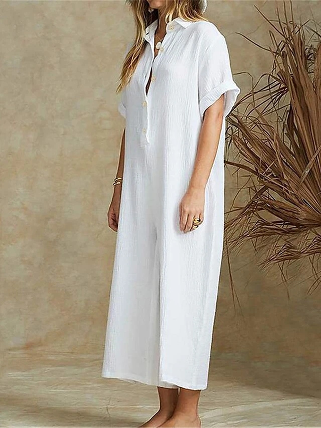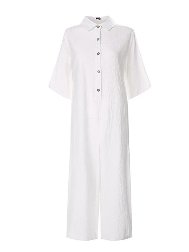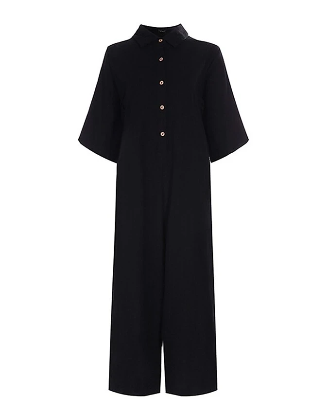 Women’s Jumpsuit Button Pocket Solid Color Shirt Collar Basic Daily Vacation Regular Fit Short Sleeve Black White Khaki S M L Spring