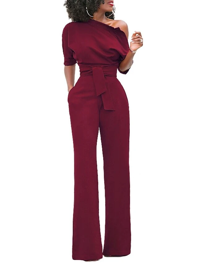 Women’s Jumpsuit For Special Occasions Christmas Pocket High Waist Solid Color Cold Shoulder Business Office Work Party Xmas Regular Fit Half Sleeve Black White Yellow S M L Summer