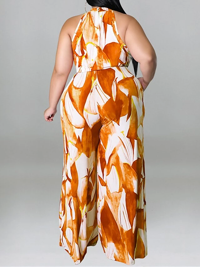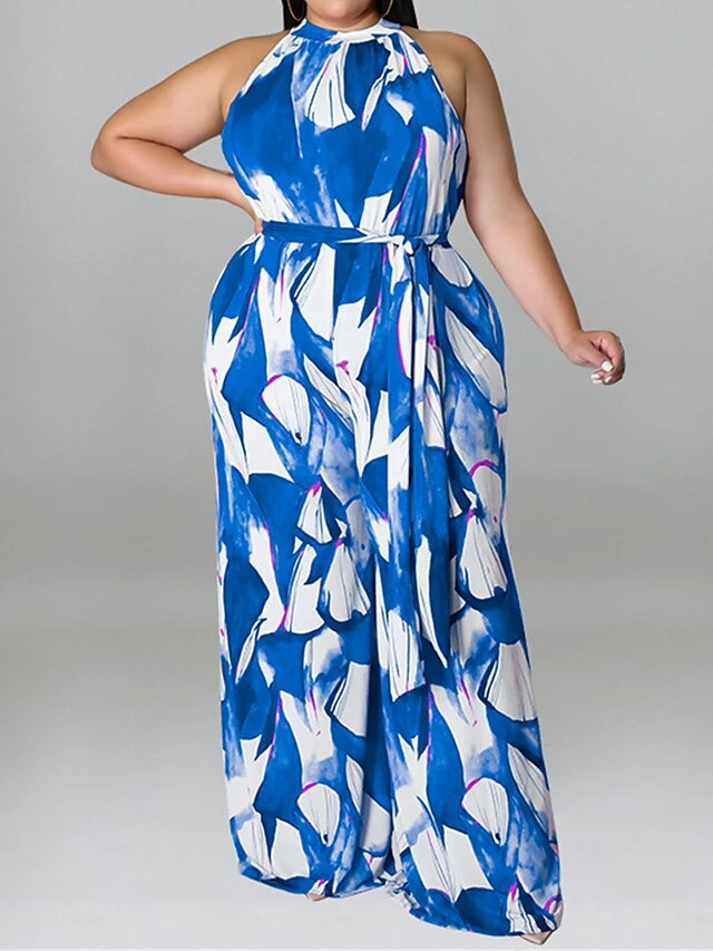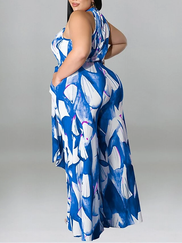 Women’s Jumpsuit High Waist Print Floral Crew Neck Casual Daily Holiday Regular Fit Sleeveless Red Blue Purple XL XXL 3XL Spring