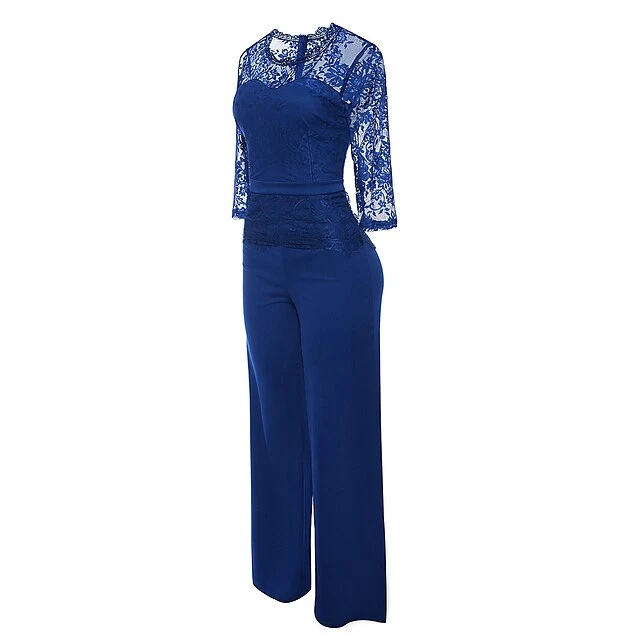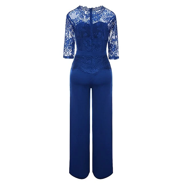 Women’s Jumpsuit Lace Solid Color Round Neck Elegant Party Prom Wide Leg Regular Fit 3/4 Length Sleeve Lace Sleeves Green Black Blue S M L Fall