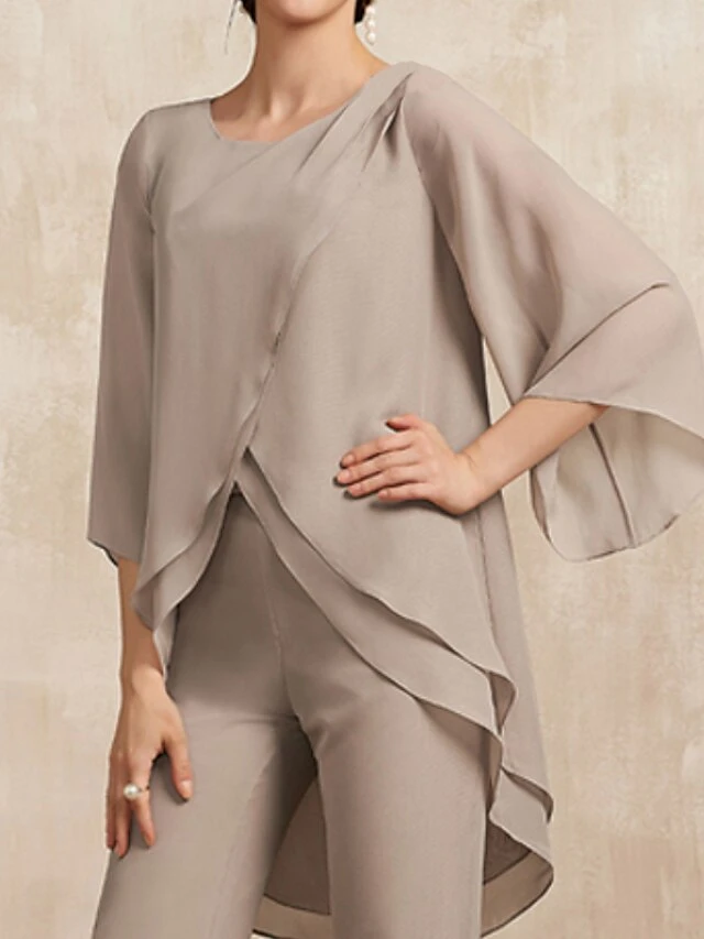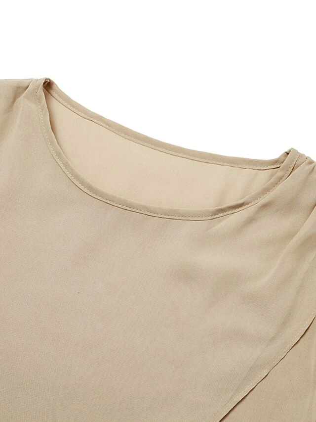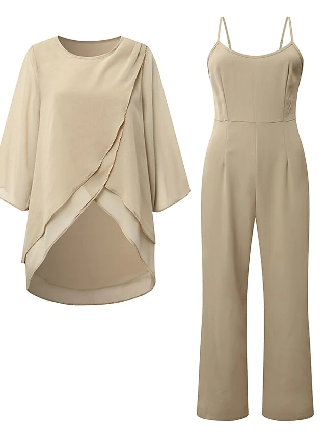 Women’s Jumpsuit Maillard Solid Color Crew Neck Elegant Daily Holiday Straight Regular Fit 3/4 Length Sleeve Khaki S M L Summer Fall