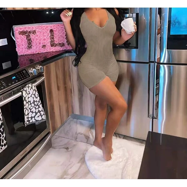 Women’s Jumpsuit Rompers Khaki Red Black Mid Waist Fashion Bodysuits Leisure Sports Weekend Micro-elastic Short Comfort Plain S M L XL XXL / Slim