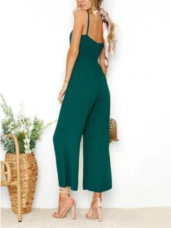 Women’s Casual Daily Going Out Blue Black Pink Loose Jumpsuit Solid Color Wide Leg Belted