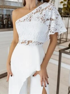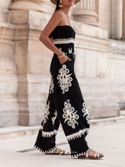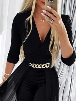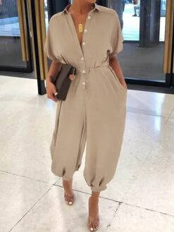 Women’s Elegant Casual Streetwear Daily Wear V Neck High Waist White Black Wine Jumpsuit Solid Color