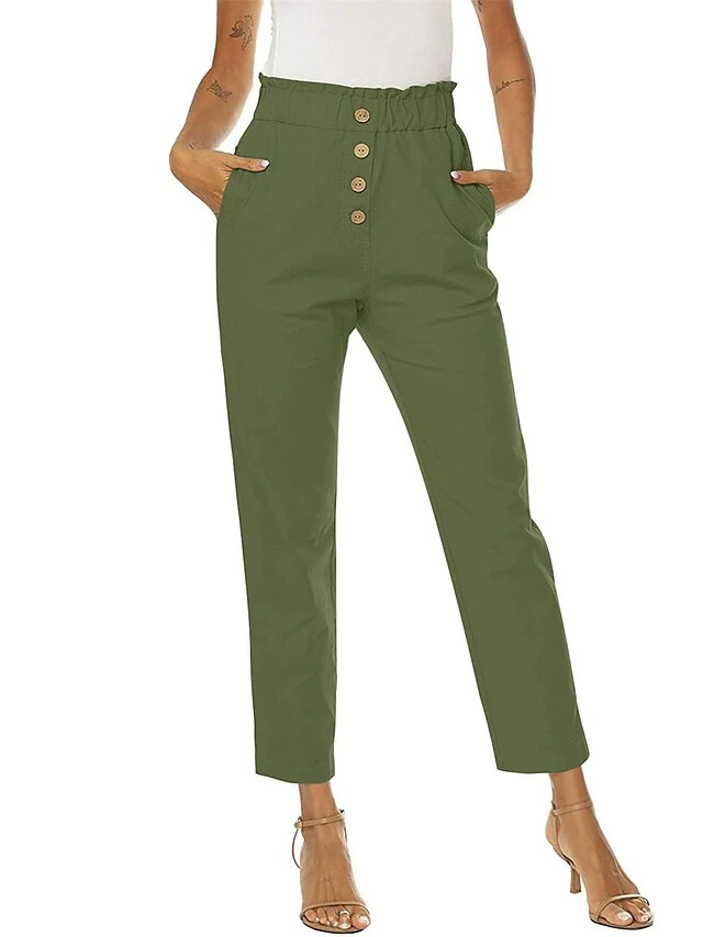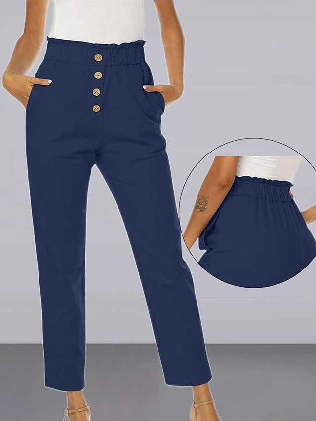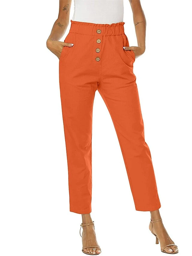 Women‘s Linen Dress Pants Trousers Cotton And Linen Magenta Orange Red Rust High Waist Streetwear Casual Comfort Holiday Daily Wear Vacation Pocket Micro-elastic Full Length Breathability Plain
