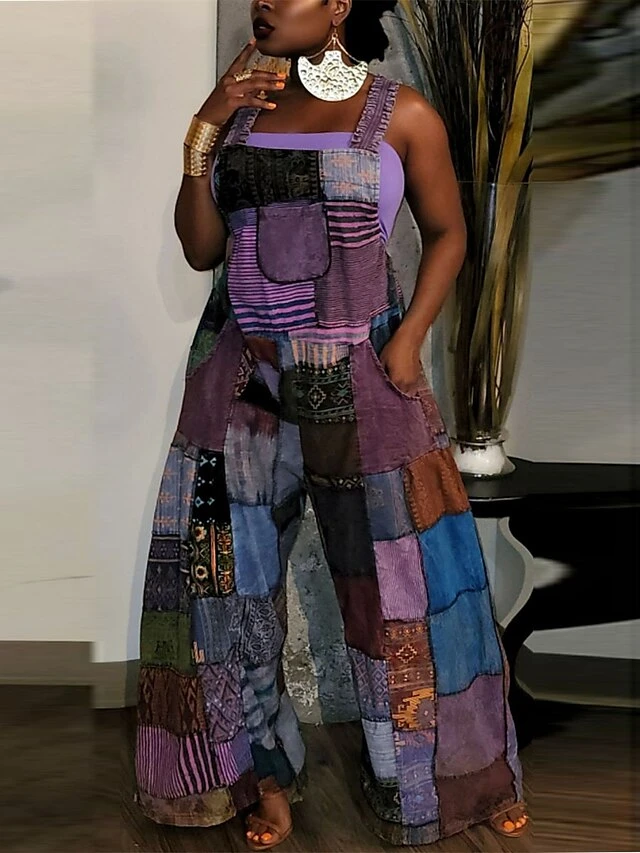 Women’s Overall Patchwork Pocket Color Block V Neck Active Street Daily Regular Fit Sleeveless Blue Purple Green S M L Summer
