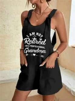 Women’s Overall Pocket Print Letter U Neck Casual Daily Baggy Shorts Loose Fit Strap Sleeveless Black White S M L Summer