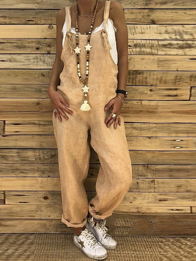 Women’s Overall Solid Color Ordinary Dailywear Weekend Straight Regular Fit Strap Black Wine Blue S M L Spring