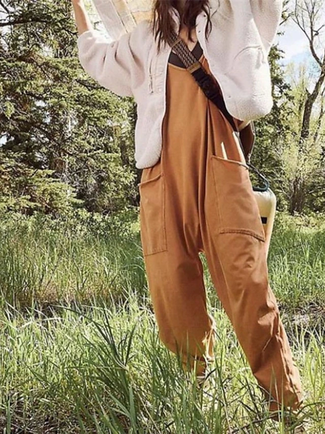 Women’s Overall Utility Patch Pocket Trug LifeSolid Color V Neck Streetwear Daily Regular Fit Sleeveless Green Khaki Brown S M L Winter