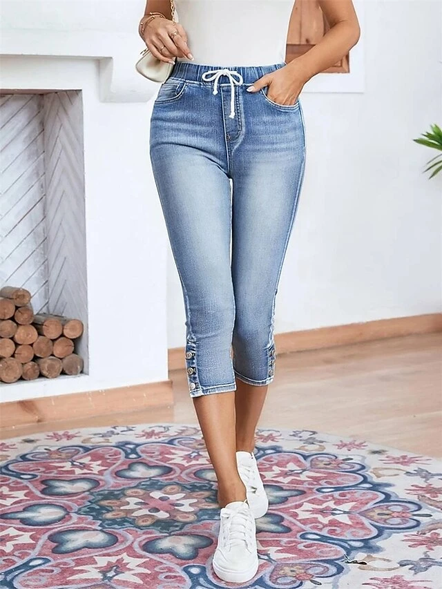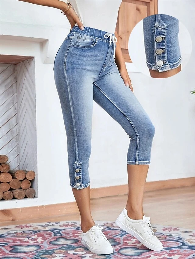 Women’s Pants Trousers Leggings Calf-Length Denim Pocket Micro-elastic High Waist Fashion Streetwear Street Daily Blue S M Summer Fall