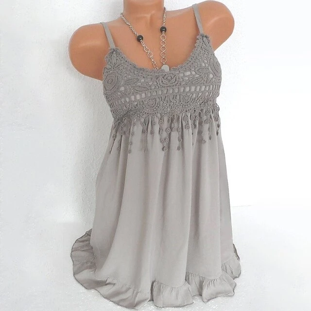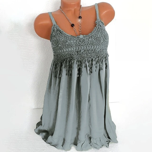 Women’s Plus Size Tank Top Camisole Summer Tops White Blue Green Solid Color Lace Ruffle Sleeveless Daily Weekend Holiday Casual Strap Regular Fit Summer Spring