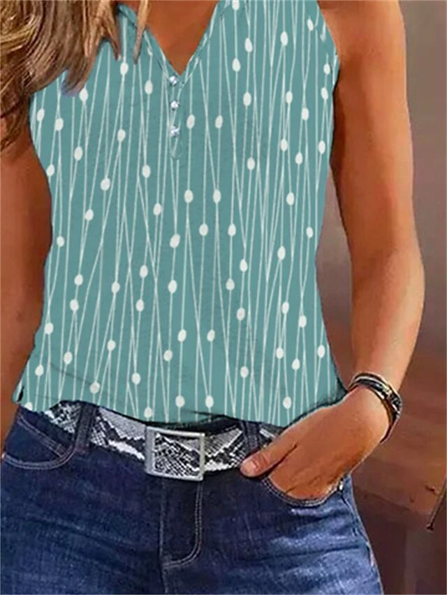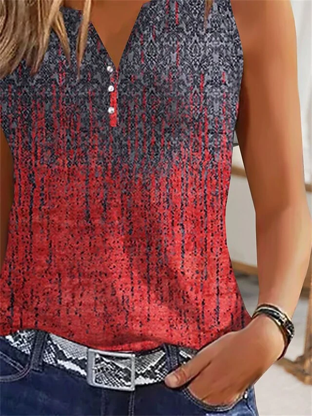Women’s Tank Top Rainbow Graphic Button Print Sleeveless Casual Tunic Basic V Neck Regular Fit