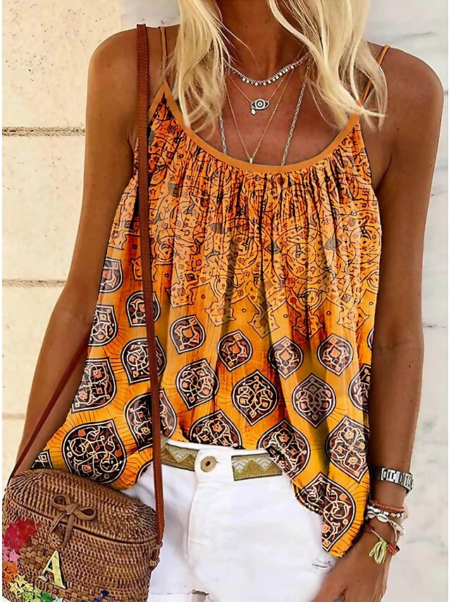 Women’s Plus Size Tank Top Summer Tops Pink Blue Orange Graphic Print Sleeveless Casual Weekend Basic Round Neck Regular Fit