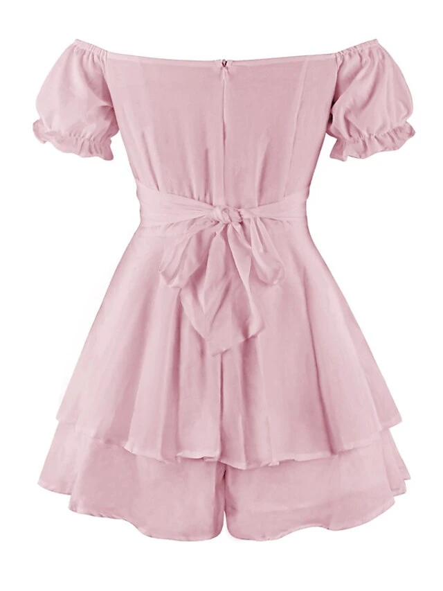 Women’s Romper Ruffle Solid Color Off Shoulder Active Street Daily Regular Fit Short Sleeve Green Blue Pink S M L Spring