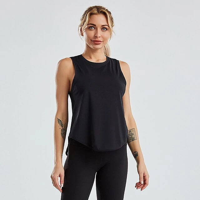 Women’s Running Tank Top Workout Tank Mesh Split Sleeveless Top Athletic Athleisure Lycra Breathable Soft Quick Dry Gym Yoga Running Sportswear Activewear Solid Colored Black White Pink