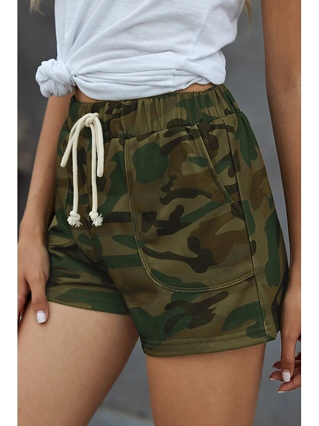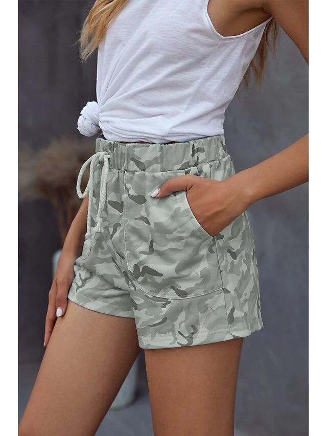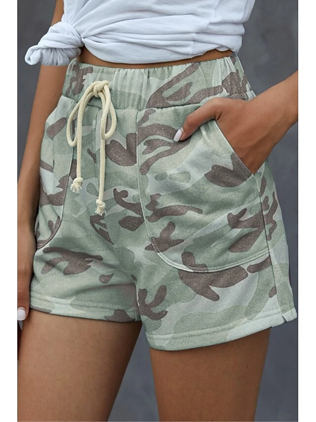 Women’s Shorts Cotton Blend Light Green Army Green Gray Mid Waist Fashion Sporty Leisure Sports Weekend Side Pockets Print Micro-elastic Short Comfort Camouflage S M L XL XXL