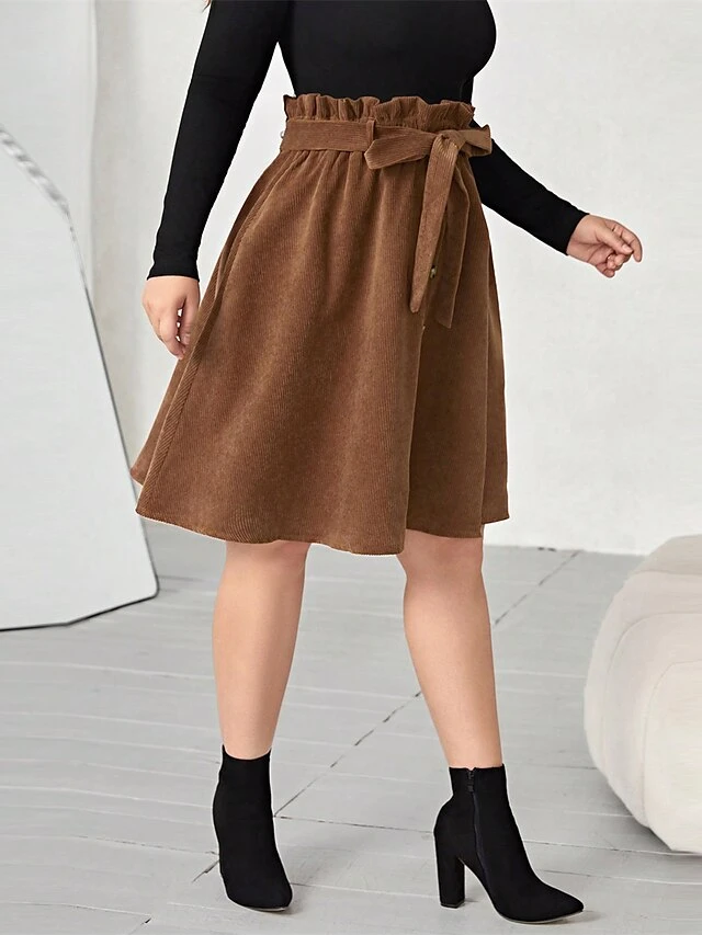 Women’s Skirt A Line Knee-length Corduroy Brown Skirts Plus Size Winter Pocket Belt Included Fashion Casual Street Daily XL 2XL 3XL