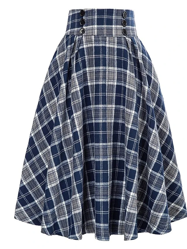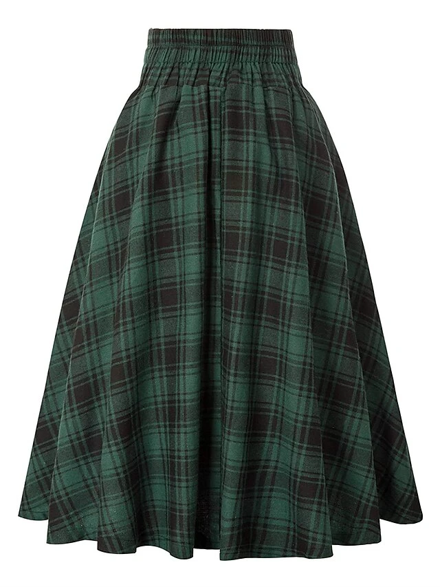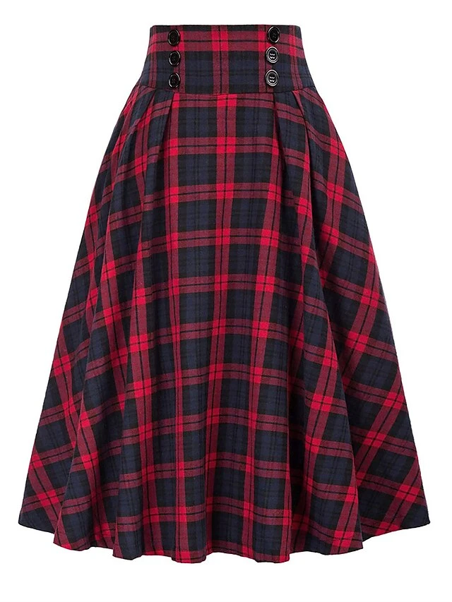 Women’s Skirt A Line Swing Midi Red Blue Green Khaki Skirts Fall & Winter Print High Waist Fashion Casual Christmas Street Xmas S M L