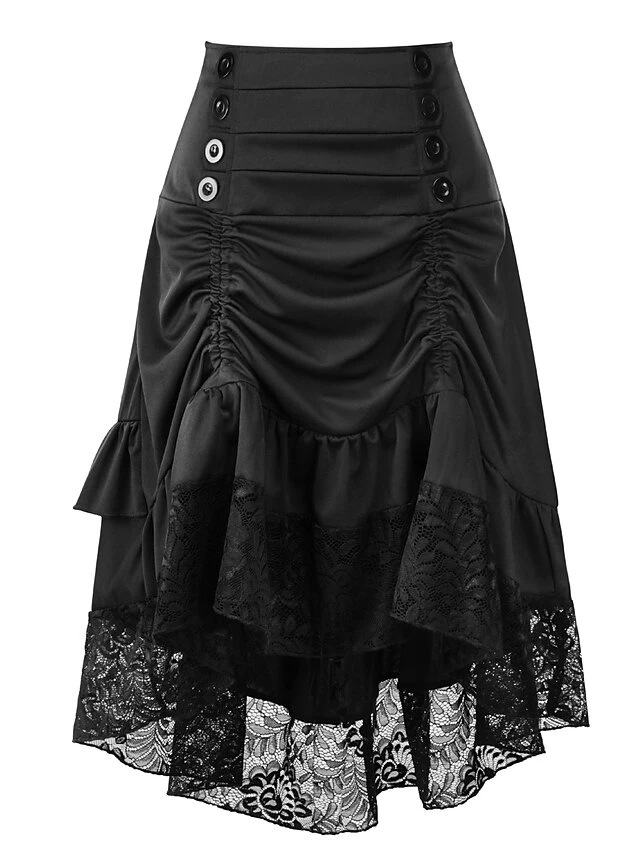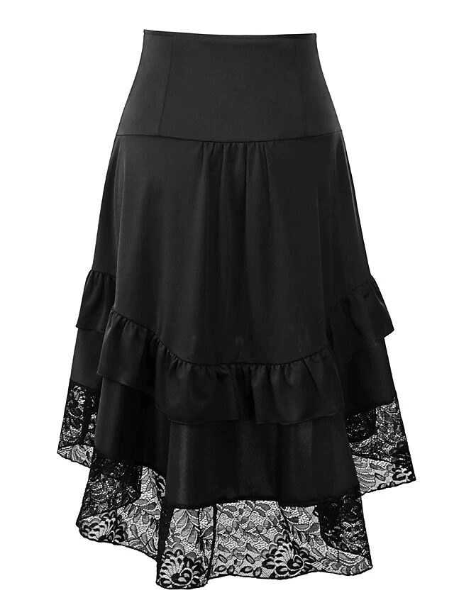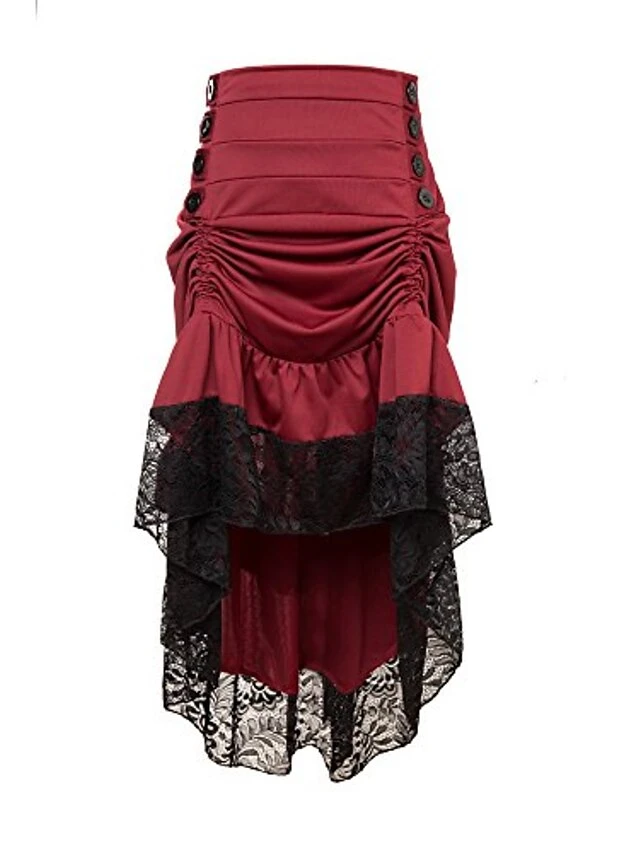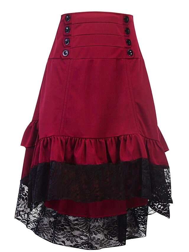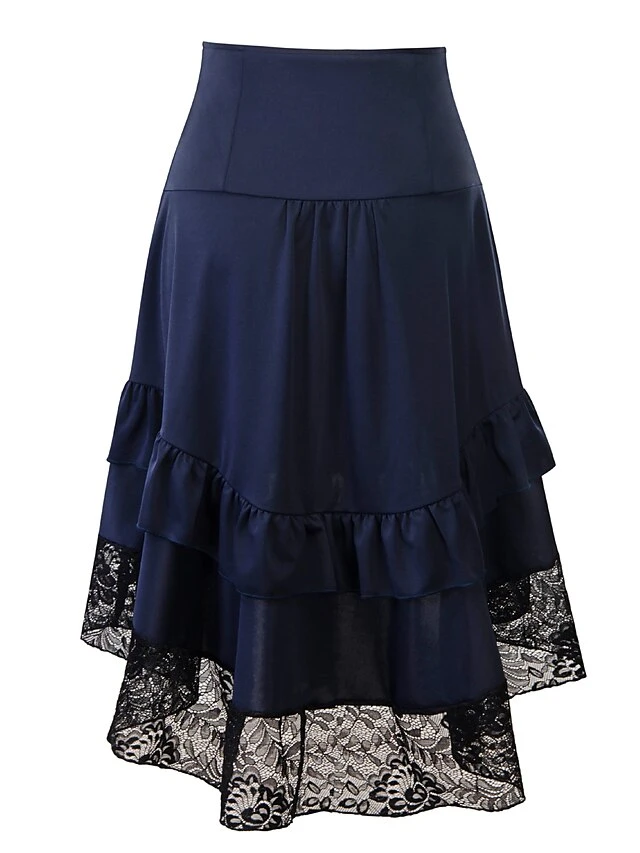 Women’s Skirt Asymmetrical Polyester Lace Over Charmeuse Black Red Navy Blue Skirts Winter Ruffle Drawstring Side Button High Waist Steampunk® Retro Gothic Carnival Costumes Ladies Christmas