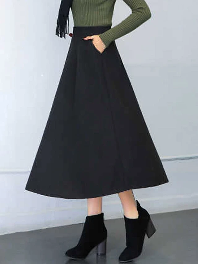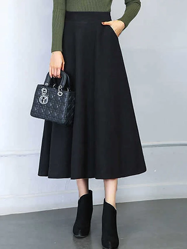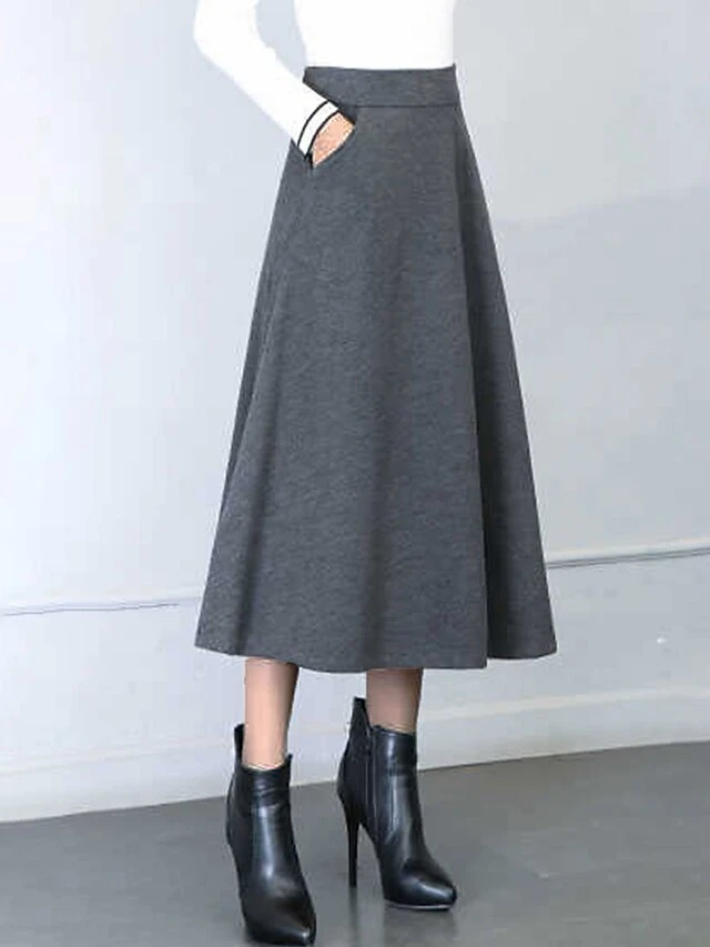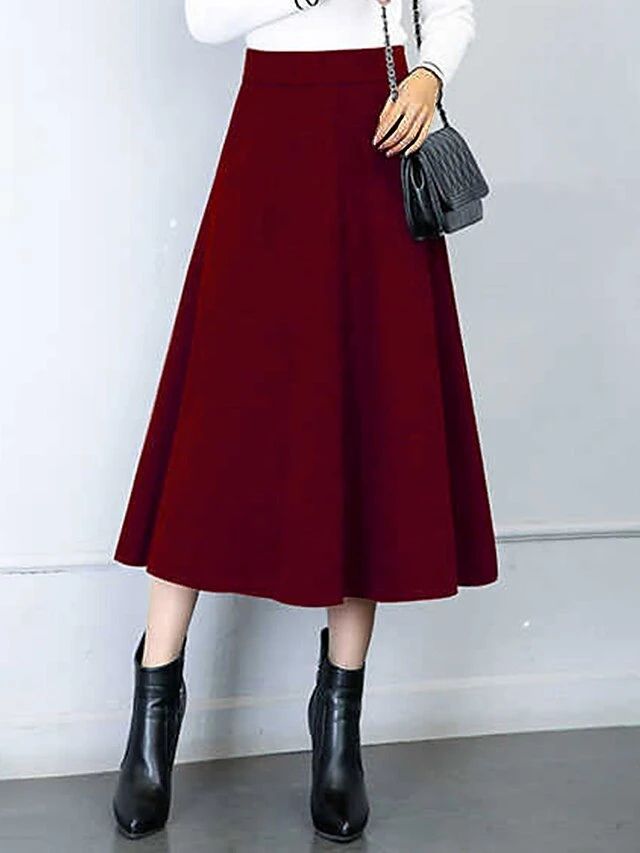 Women’s Skirt Long Skirt Midi Wine Black Dark Gray Skirts Fall & Winter Ruched Fashion Casual Street Daily S M L