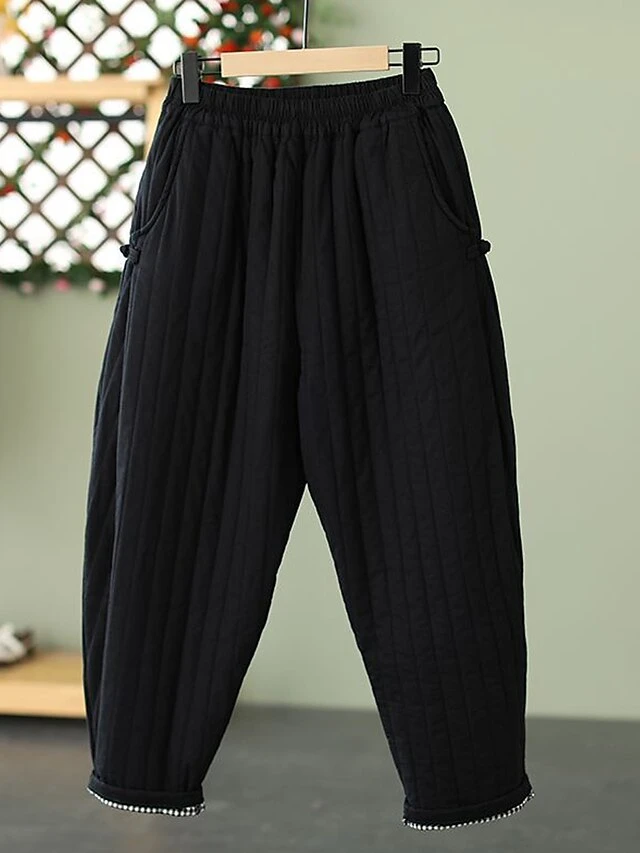 Women’s Slacks Down Pants Baggy Full Length Baggy Micro-elastic Fashion Streetwear Outdoor Street Army Green 882# 219# Black 219# L [recommended 100-115 Catties] XL [recommended 115-130 Catties] Fall