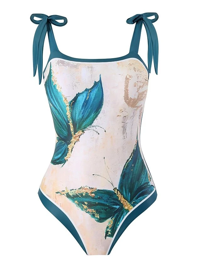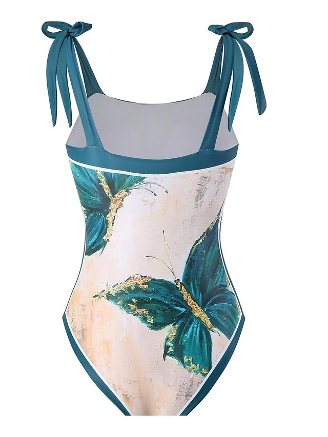 Women’s Swimwear One Piece Beach Bottom Normal Swimsuit 2 Piece Printing Butterfly Blue Bodysuit Bathing Suits Sports Beach Wear Summer