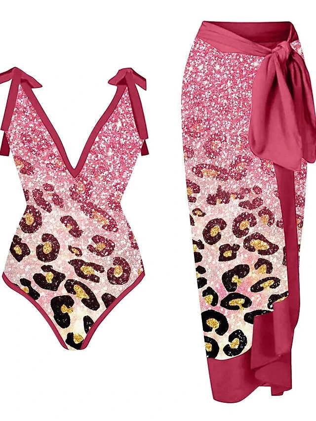 Women’s Swimwear One Piece Beach Bottom Normal Swimsuit 2 Piece Printing Leopard Sunflower Red Blue Green Bodysuit Bathing Suits Sports Beach Wear Summer