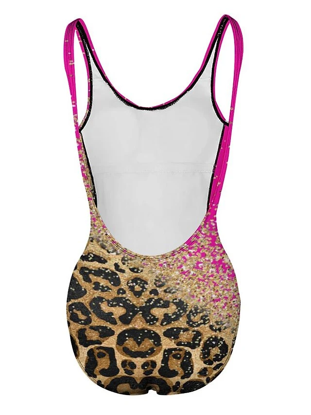 Women’s Swimwear One Piece Normal Swimsuit Printing Leopard Yellow Pink Blue Bodysuit Bathing Suits Sports Beach Wear Summer